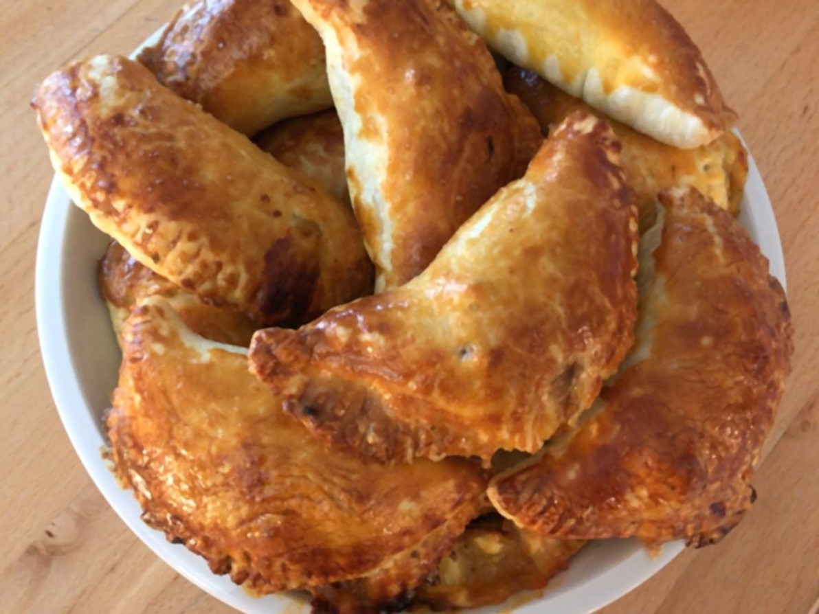 - Remplissez les cercles avec de la pâte à base de viande hachée, refermer en badigeonnant les bords avec du jaune d'oeuf puis badigeonnez le reste de l'empenadas avec du jaune d'oeuf.